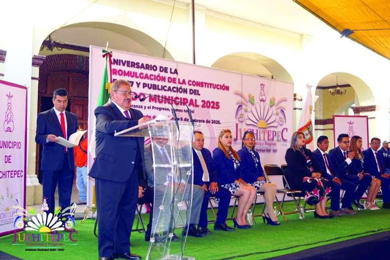 "Este bando municipal 2025 habla de los derechos que tenemos como ciudadanos y también de las obligaciones; regulan el actuar del municipio para evitar abusos y enfocar nuestros servicios en favor del pueblo;pueden estar seguros que todo lo que se regula en este Bando es para que Juchitepec y Cuijingo tengan un mejor desarrollo económico y social"; -y culminó diciendo- "Gracias a quienes acudieron a este evento solmene;les aseguro, como ya lo he demostrado, no les voy a fallar;por la esperanzayelprogreso,vamostodos";concluyó.