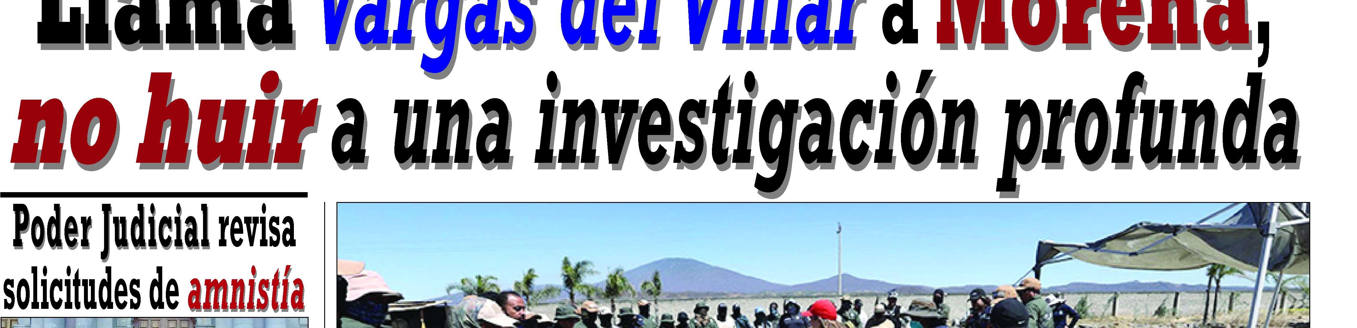 El Senador del Estado de Méxi co, EnriqueVargasdelVillar llamó a sus pares de Morena paraquenohuyanalainvestigación profunda en el caso del Rancho Izaguirre, ubicado enTeuchtlán, Jalisco, y que se sumen a la propuesta de conformar una comisión especial para investigar los hallazgos encontrados en este lugar en díaspasados,ellosintintespartidistas.