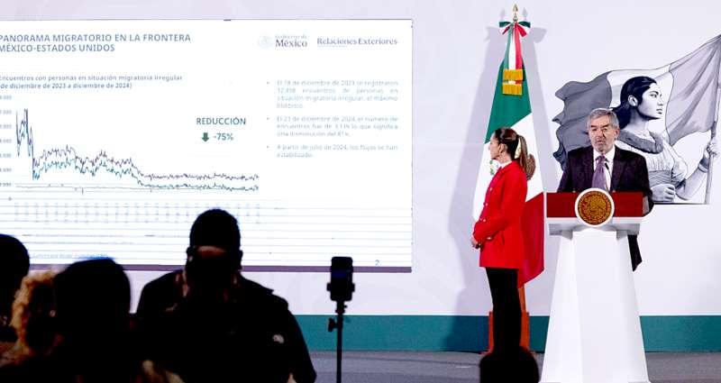 Mientraselllamado “ZardelaFrontera” de Trump, Tom Homan, sentencia que se deportará a familias enteras de indocumentados con todo e hijos, así hayan nacido en la Unión Americana, sin descartar que los encarcelen, la presidenta Claudia Sheinbaum Pardo se concreta a prometer apoyo legal a nuestros compatriotas, quienes, destacó a su vez el secretario de Relaciones Exteriores,Juan Ramón de la Fuente,aportanconsutrabajo8porcientodelproducto internobrutoaEstadosUnidos, semuestran más quetemerosos,sabedoresdeloincierto de su futuro si son expulsados de la Unión Americana, así coadyuven de manera significativa en el crecimiento de la "naciónmás poderosa del mundo", la que no se frenará ante la débil oposición que frente a la grave advertencia ha hecho el acaudalado empresario y presidente electo Trump, quien de acuerdoconnopocosanalistashaperdidola razóny está "totalmentedeschavetado".De la Fuente adelantó durante la Conferencia Mañanera del Pueblo en Palacio Nacional, que México desarrolla un "Botón de Alerta" que entraría en funcionamiento a principios de enero, para que migrantes en el vecino país del norte soliciten ayuda en nuestros 53 consulados,loque seguramente no quita el sueño a quien a partir del 20 de enero, por segunda ocasión, asumirá la primera magistratura de Estados Unidos, posición que ocupará para también "apropiarse" del Canal de Panamá, el que legítimamentepertenecealospanameños,loque
