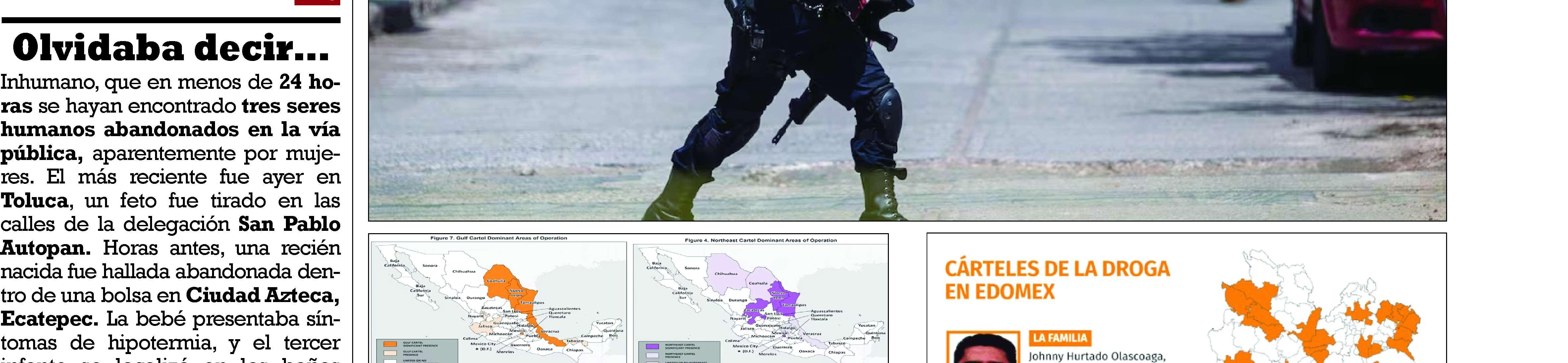 LaconsolidacióndeestastresorganizacionesenelEstadodeMéxico debeentendersecomounaocupacióngradualperofirme. Elnarconosolohatomadomunicipios:hacapturadoinstituciones,ha infiltradocandidaturas,hasembrado miedoyhadesplazadopoblaciones enterasyyanoesunproblemade seguridadpública,esunacuestión desoberanía.