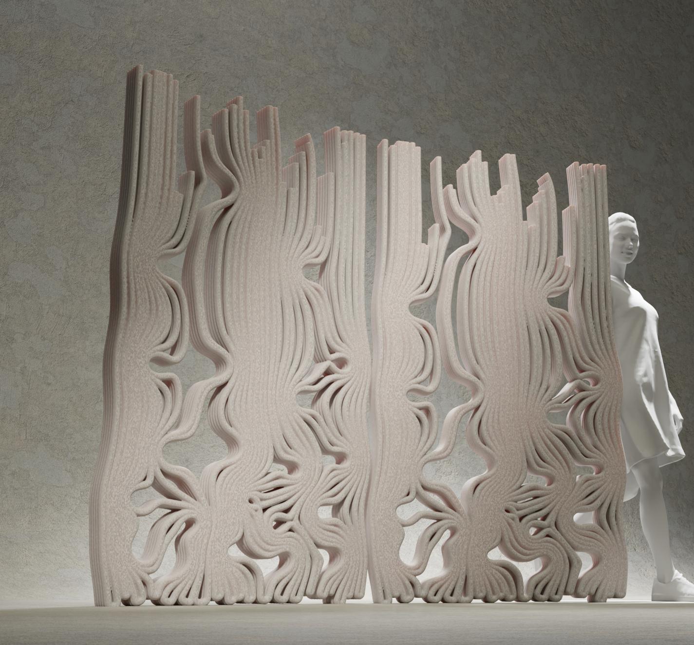 At the crossroads of diverse elds of interest - from natural sciences to algorithmic sciences, and including philosophy - my design practice seeks to explore and strengthen the relationships between object, subject, and their environments. As a computational designer, I develop works ranging from small-scale devices to micro-architectures. These creations emerge from the fertile interplay between digital tools and natural phenomena, embedded within broader ecosystemic logics.
