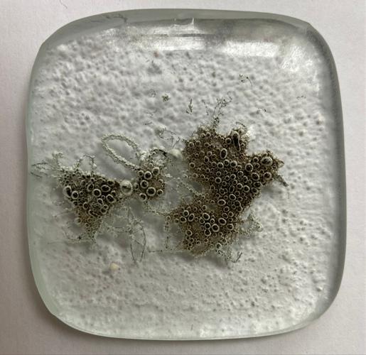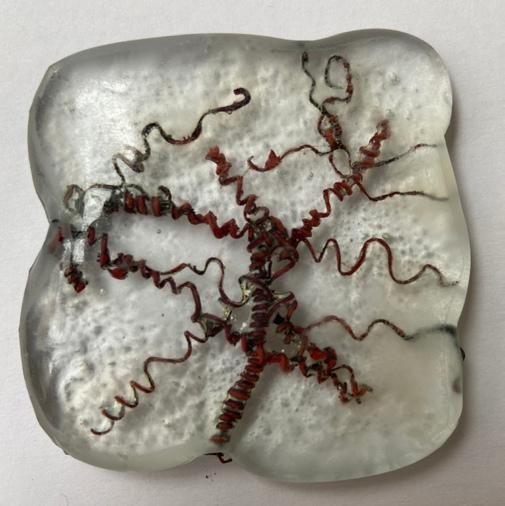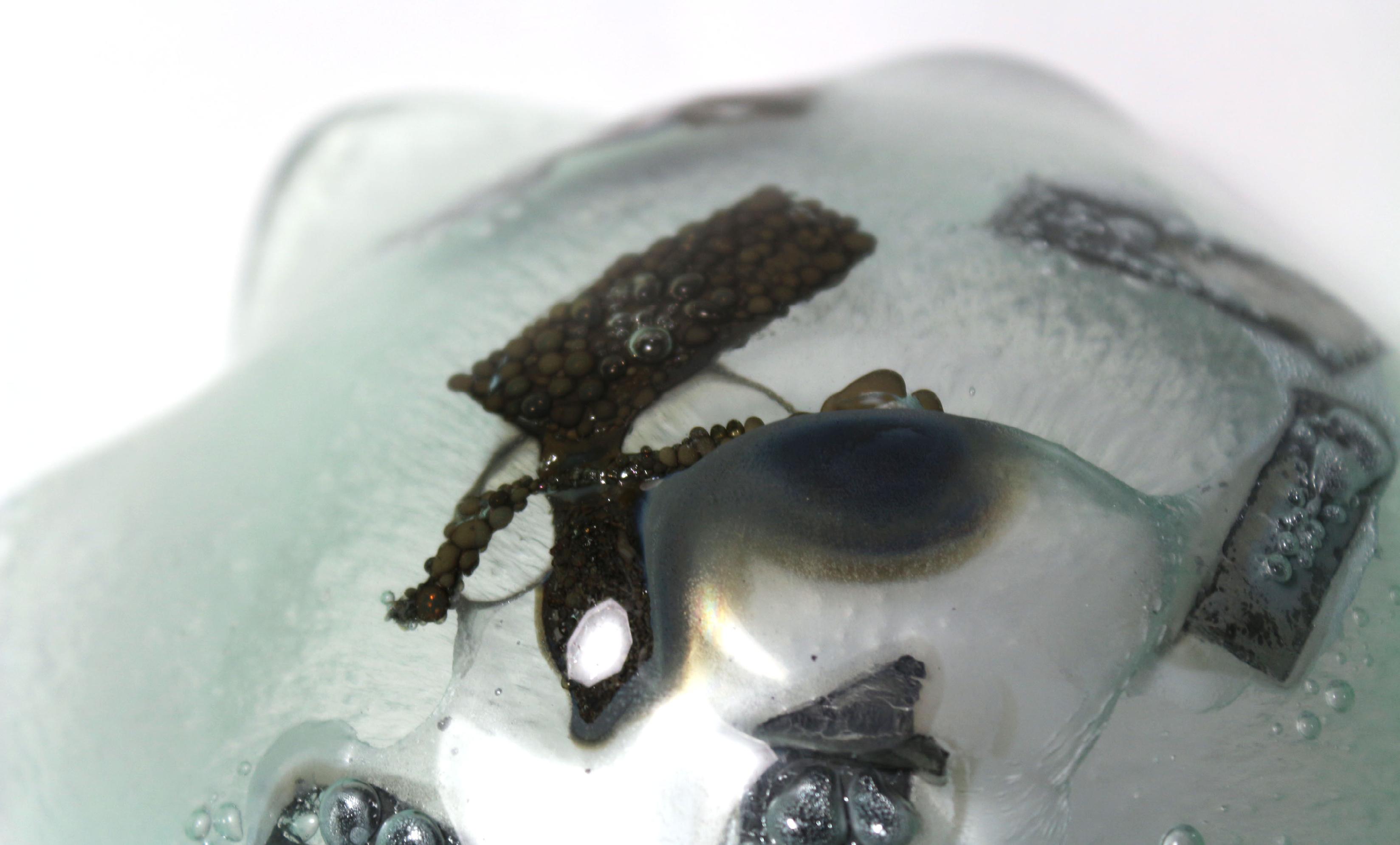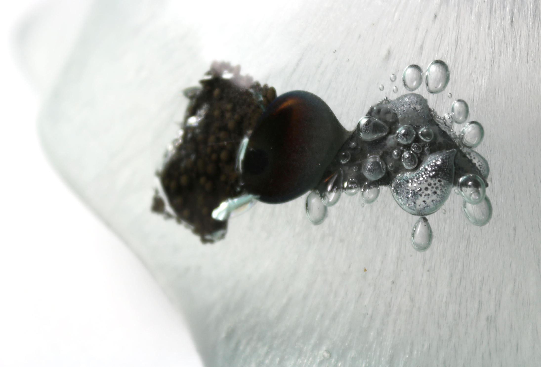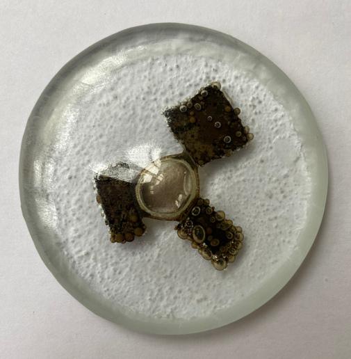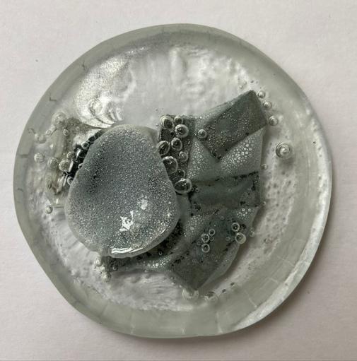 → Le présentoir est donné à l'école du verre Lucas de Nehou comme banque de donnée de référence sur les inclusions verre-méteaux et leurs effets plastiques. L'objet nous invite ici à explorer davantage.