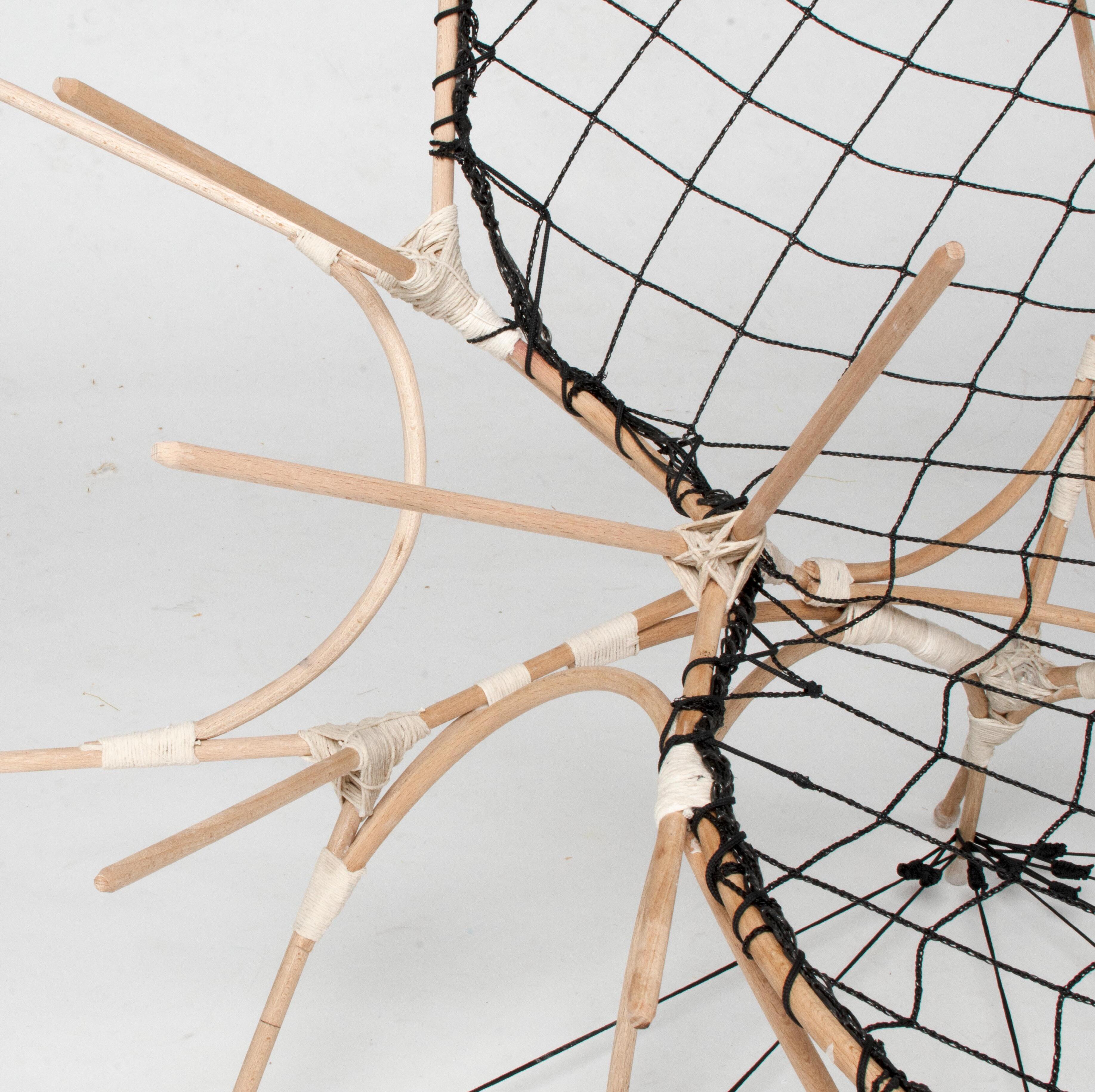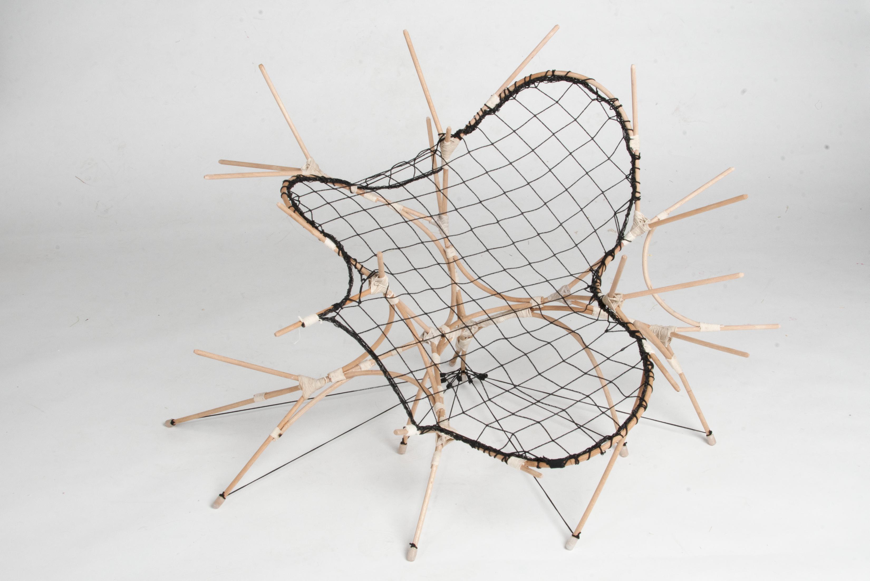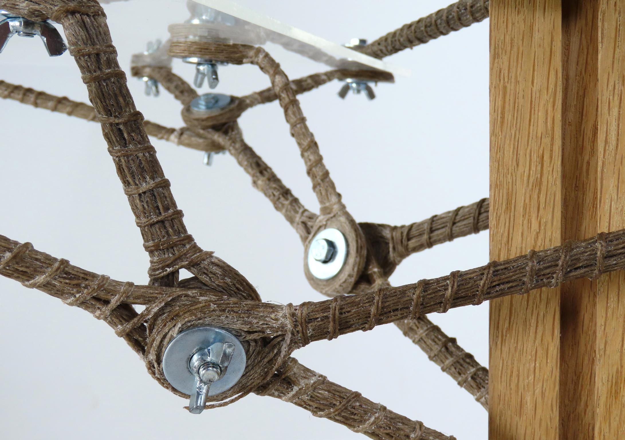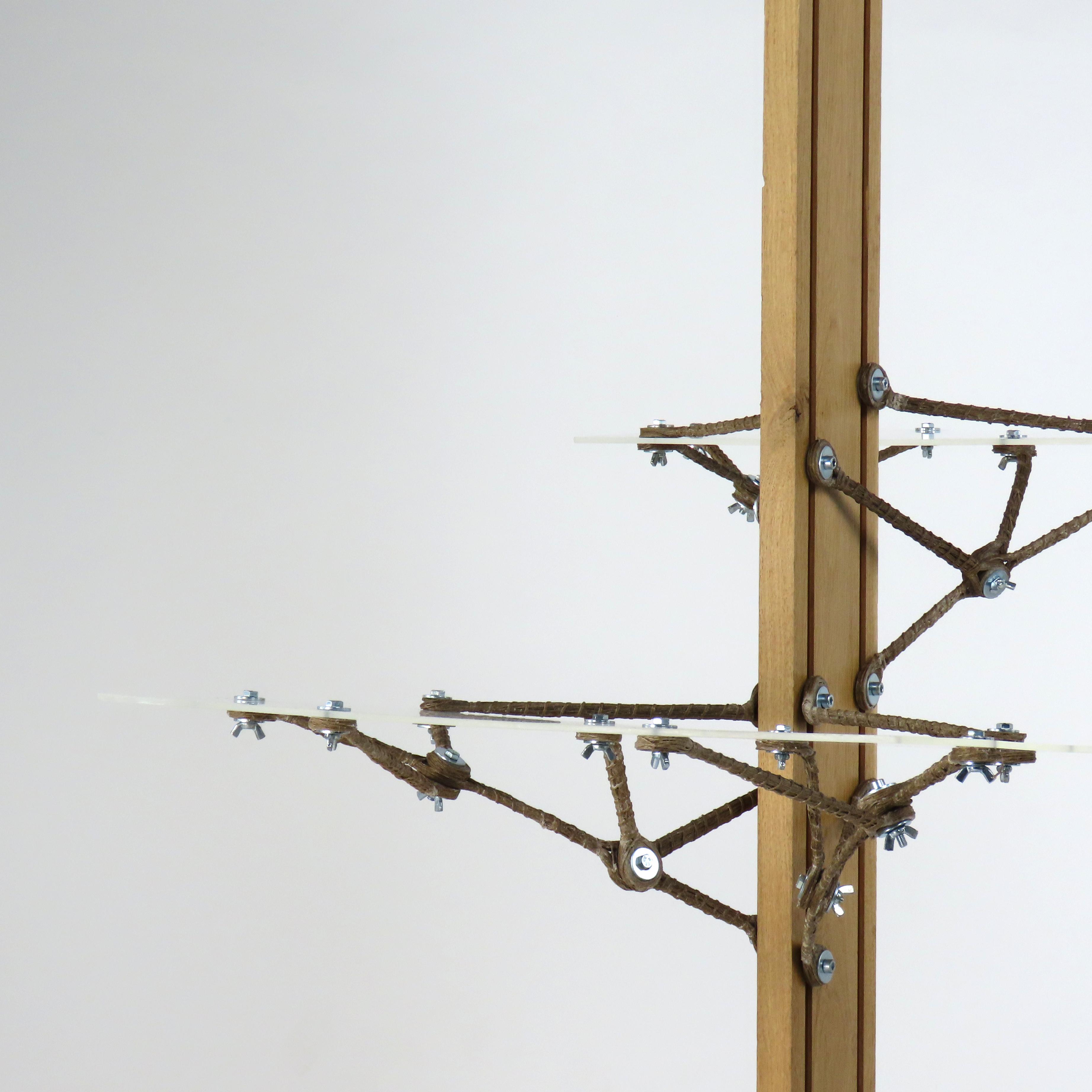 Une étagère composée de segments de bres de lin enroulées.