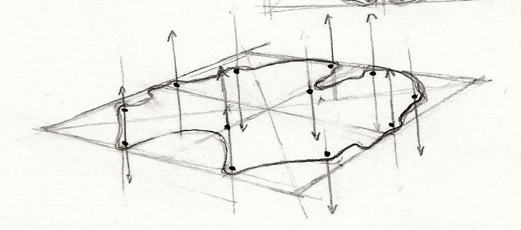 → La bulle de savon exerce une tension homogène sur son cadre et trouve sa forme moyenne par économie de moyen.