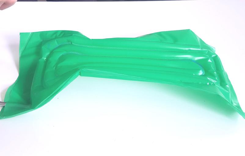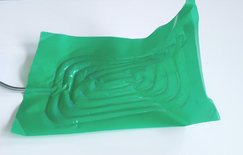 Sous pression, le tuyau en silicone pousse de l’interieur de manière égale sur toute les parroies de la gaine tréssée. La structure est surcontrainte et garde sa géométrie en mémoire jusqu’à dépression.