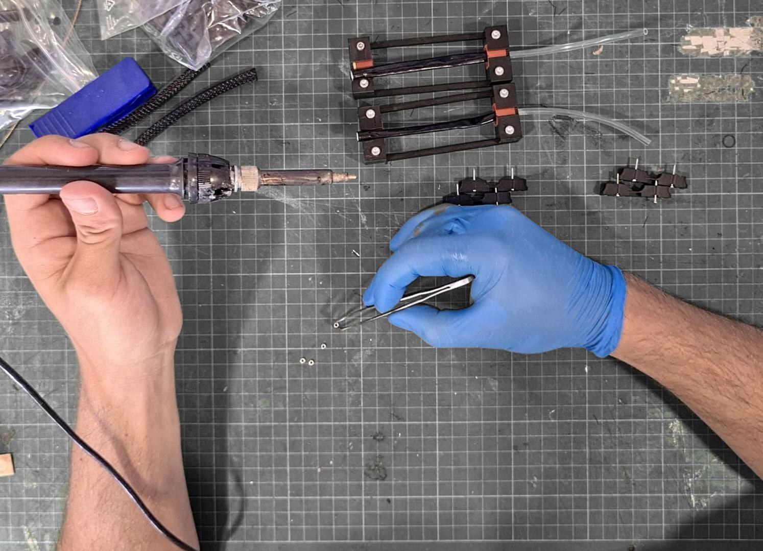 Le laboratoire de recherche EnsadLab de l'École Nationale Supérieure des Arts Décoratifs (PSL) accueille, au sein du groupe Re ectiveInteractiondirigé par Samuel Bianchini (HDR et artiste), le post-doctorant et roboticien Félix Vannest de l’INRIA. Ce dernier développe un matériau aux propriétés physiques inhabituelles. Mon rôle consiste à revoir le processus de fabrication du matériau pour augmenter sa fiabilité et sa robustesse. De plus, j' imagine un dispositif de médiation pour l’exposition Oscillation au Centre Culturel Canadien.