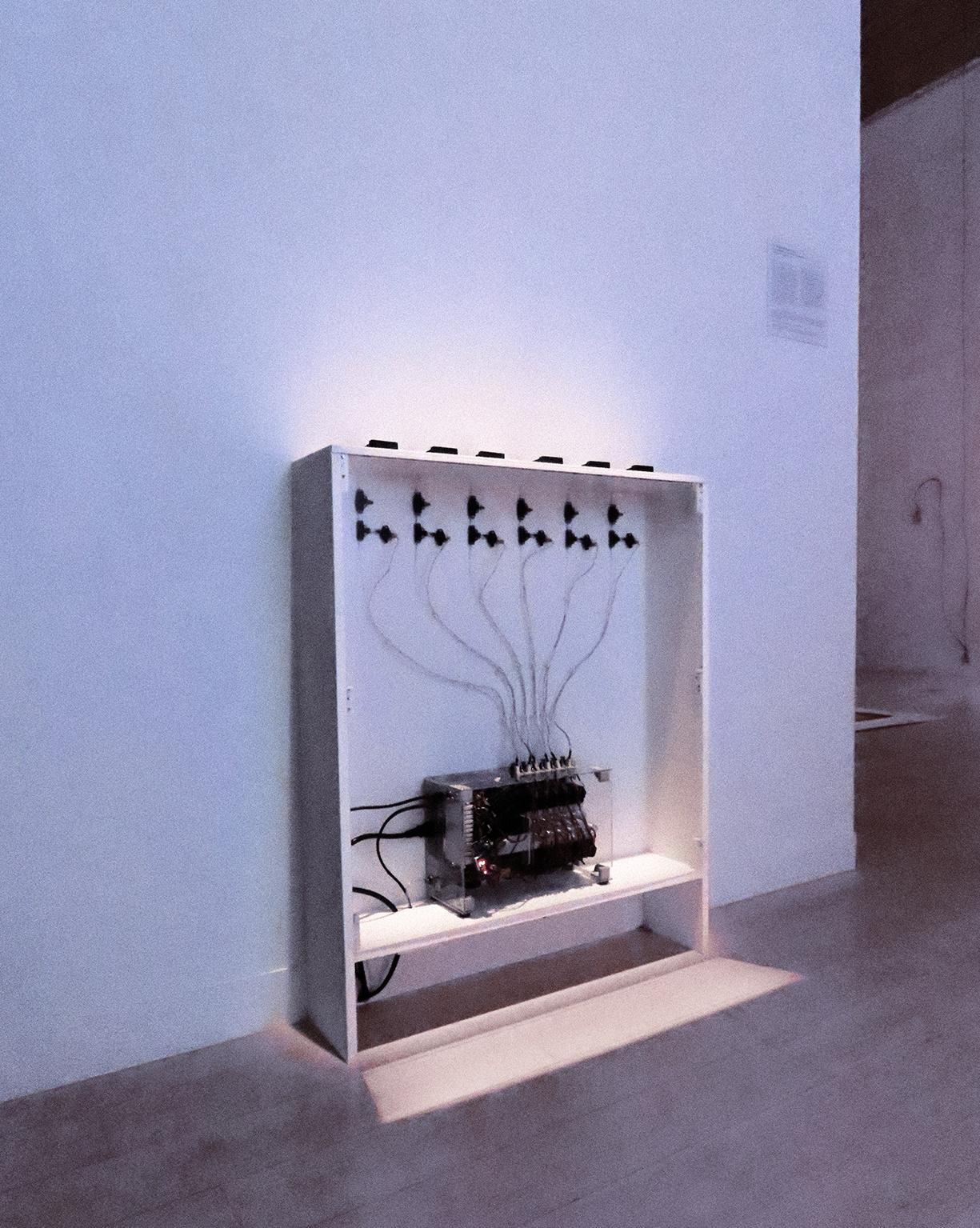 → A l'inverse d'une boite noire, les entrailles de la machine sont données à voir : capteurs, conduits, câbles, interrupteurs...