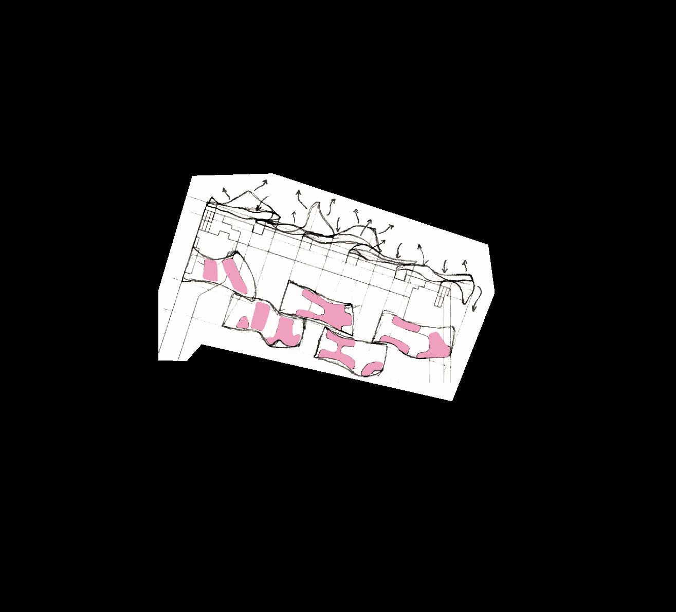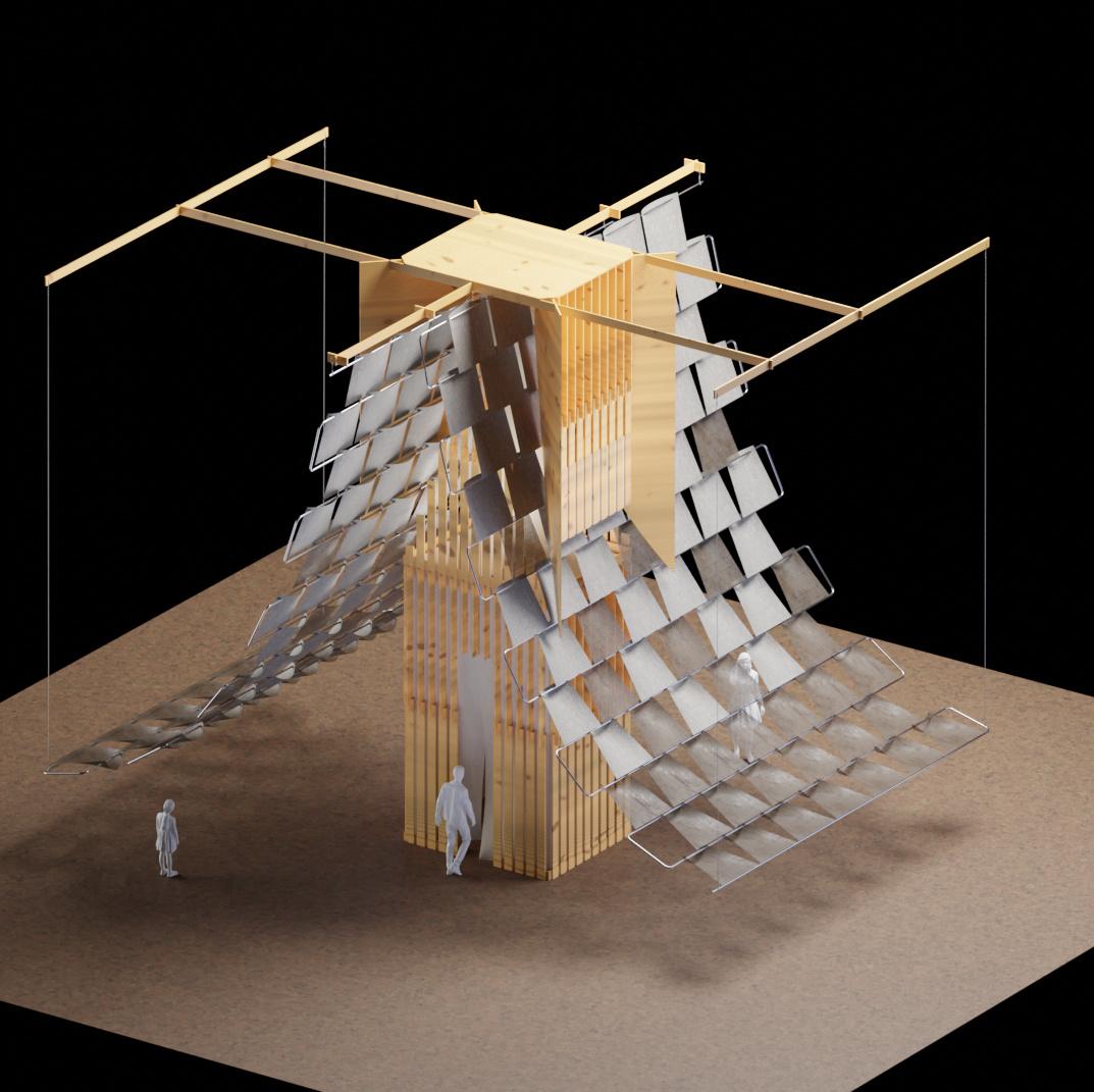 → Architecture hybride de 10 m de haut reprenant le principe des tours à vent iraniennes a n de recréer une colonne d'air frais.