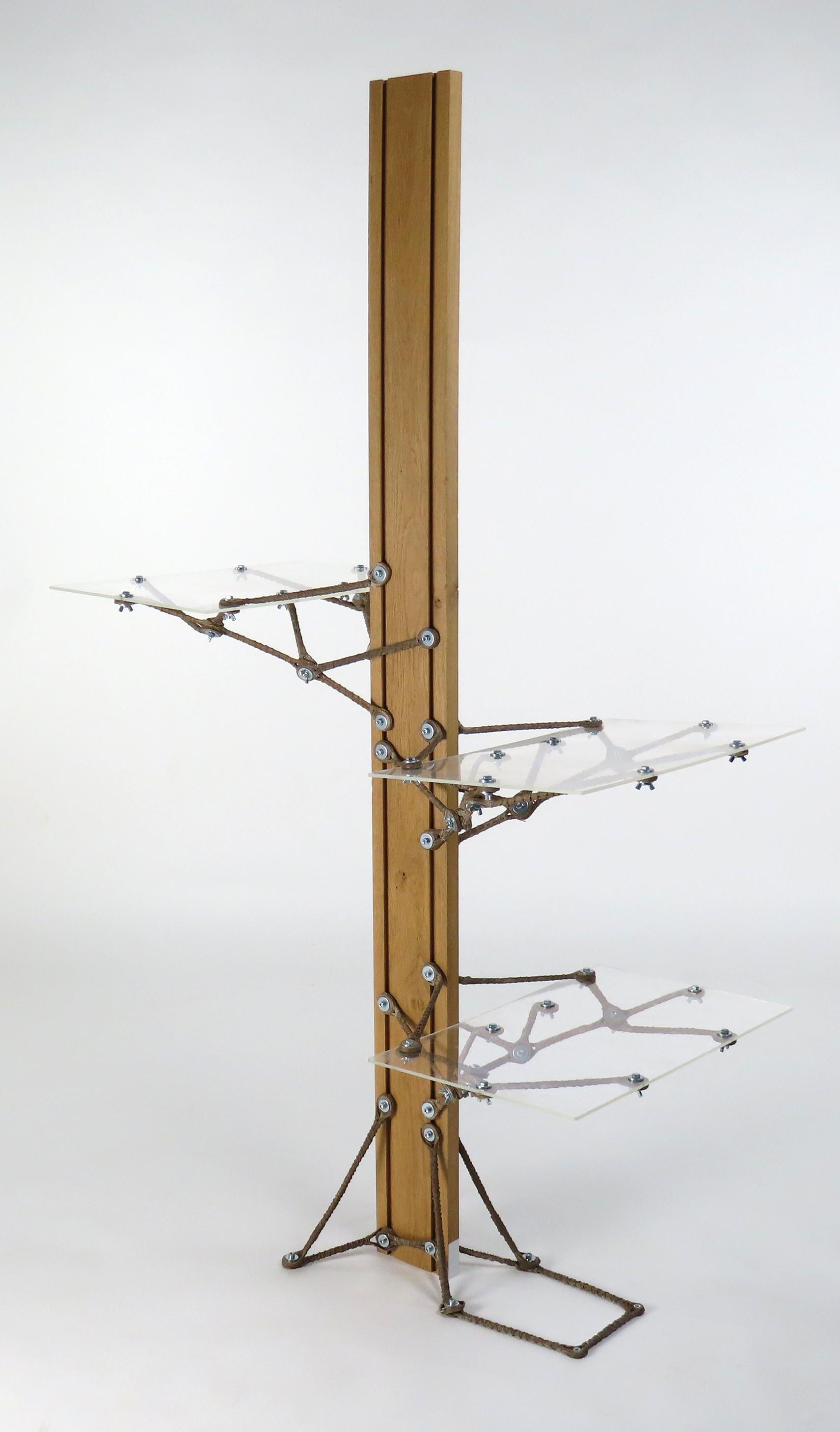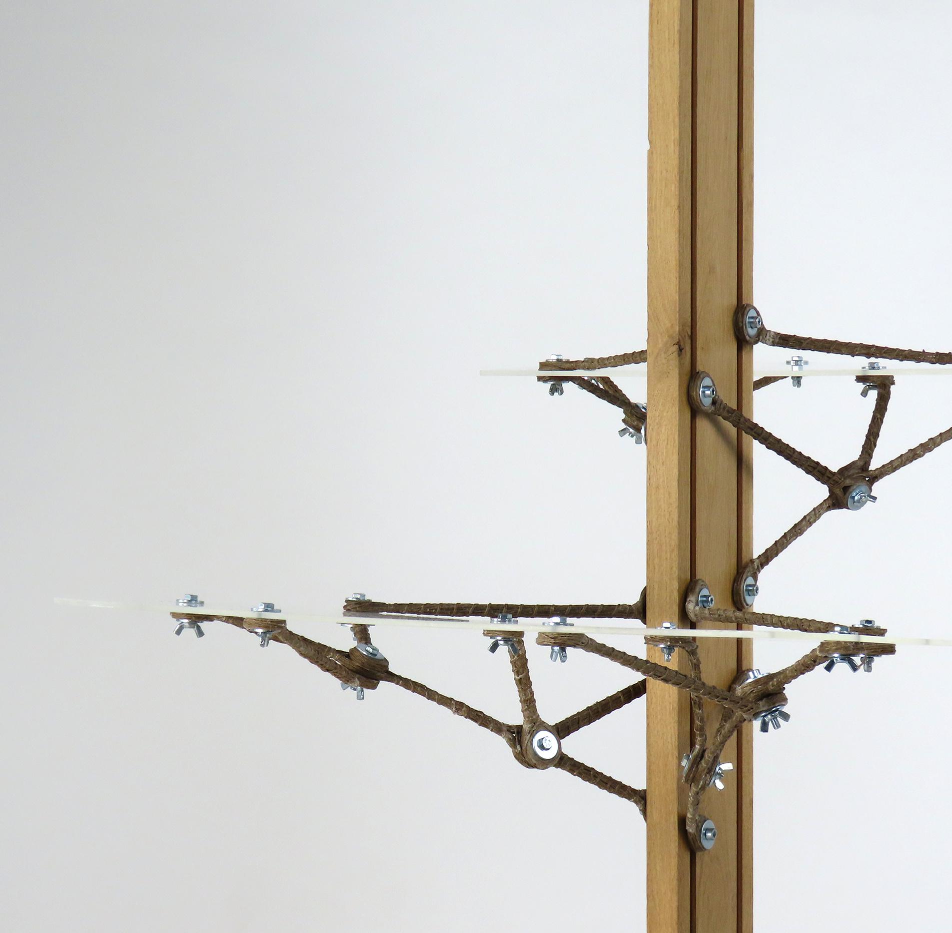 Une étagère modulaire composé de ségments de lin.