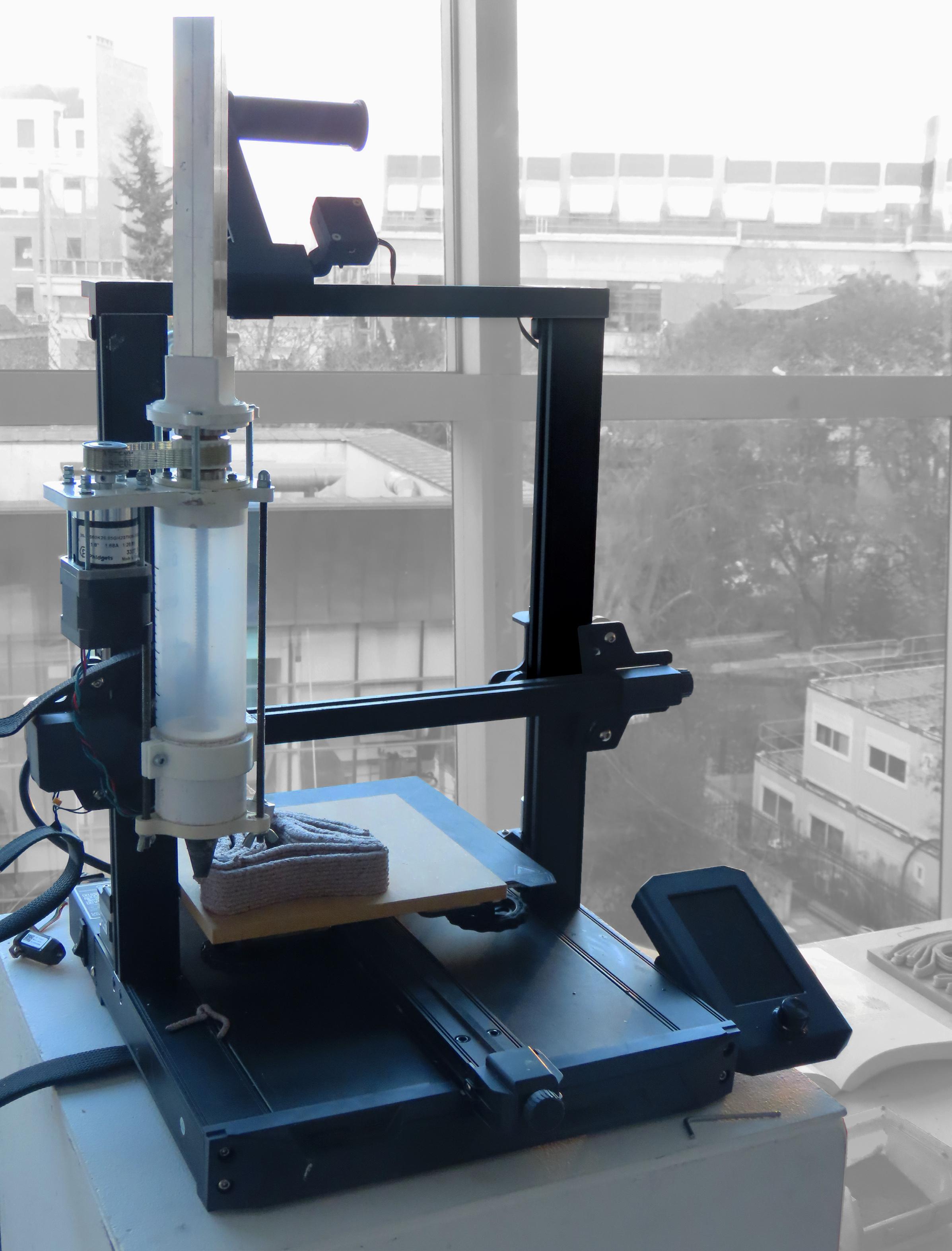 → Détournement d’une imprimante 3D et la fabrication et amélioration d’un module d’extrusion développé par Emmanuel Hugnot.