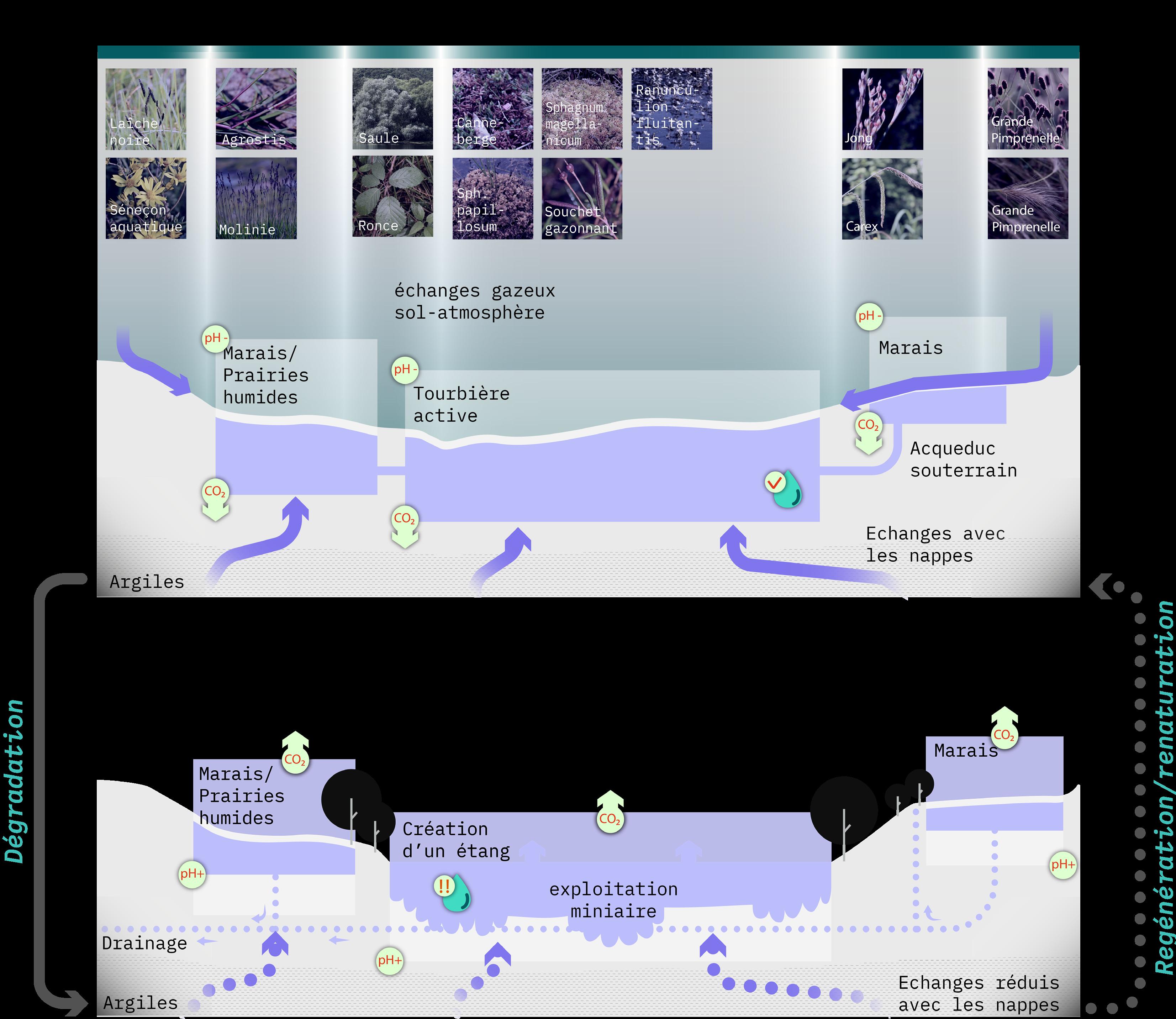 La tourbière de Sèves de son état innitial à sa dégradation presque irréversible.