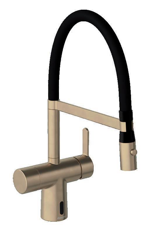 HERAUSZIEHBARER AUSLAUF Ein flexibler Schlauch ermöglicht einfache Reinigung vom Waschbecken und Spüle. Der Brausekopf kann bis zu 400mm herausgezogen werden. Nach dem Gebrauch zieht sich der Schlauch von selbst zurück.