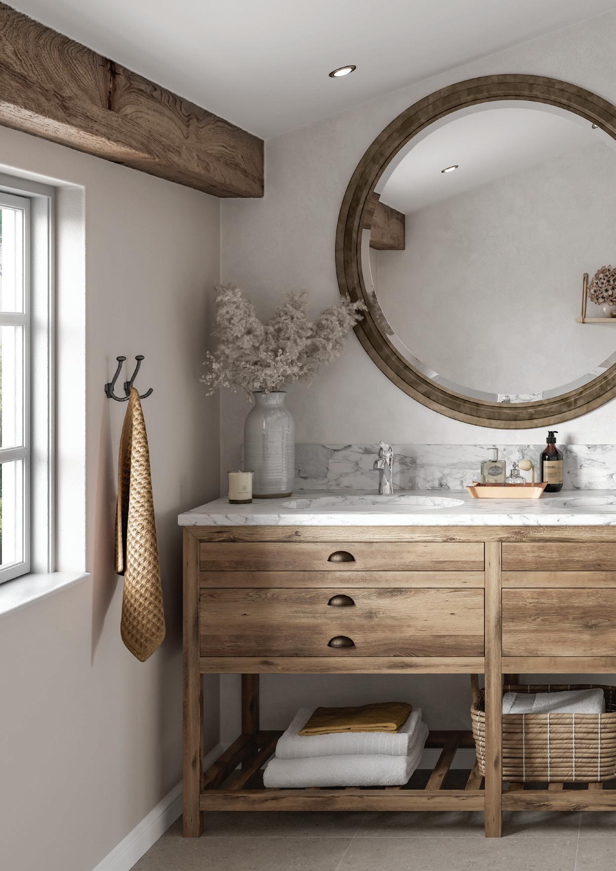 Lihtne ja puhas, kuid mitte üleliia steriilne, sest teie vannituba peab sobima ka teie kodu ülejäänud materjalide ja värvidega.