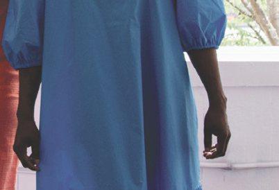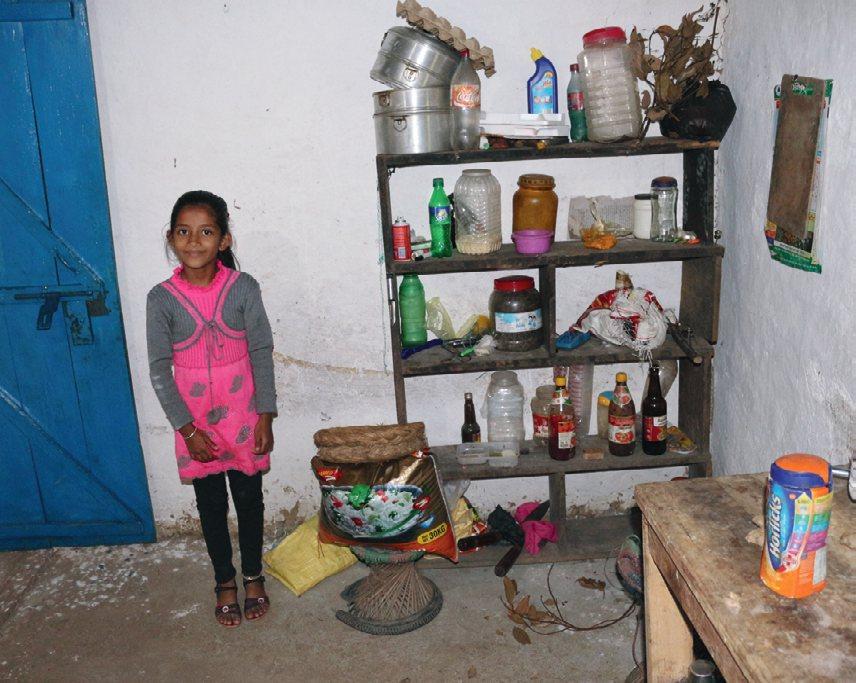 A student showing the kitchen in Mahendra School for the Deaf before ABIN rebuilt the entire facility.