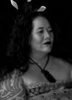 Tūī is one of the storytellers and researchers for the cultural components in Mana Wahine. She is the lyric and music composer of the karanga, waerea and pātere [chants, spoken word] for this piece. Tūī has created whakatauāki and karakia for Ōkāreka Dance Company. Her voice features throughout the performance and her face is projected on the background of Mana Wahine