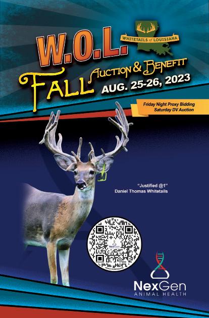 Saturday Sale Saturday Sale 48 2023 W.O.L. FALL AUCTION & BENEFIT Lot Lot DONATION 49 15223 Rt. 87 Hwy., Williamsport, PA 17701 Email: jnewton@cervidsolutions.com Ph: 570-478-2870 www.cervidsolutions.com Cervid Solutions Josh Newton 1 YEAR MEMBERSHIP TO CERVID SOLUTIONS 50 W.O.L. DONATION PO Box 436, Folsom, LA 70437 Ph: 985-892-0056 Email: whitetailsoflouisiana@gmail.com www.whitetailsofla.com Whitetails of Louisiana FRONT COVER WITH A 1 FULL PG AD & 2 PG. ARTICLE WOL QUARTERLY MAGAZINE - SUMMER 2024 ISSUEOffering Front Cover for Single Buck Picture (or product services) of Whitetails of Louisiana Quarterly Magazine + Full page ad space inside -AND2 page spread Feature Farm Article! (journalist interview and writeup included) (Buyer is responsible for sending in finished artwork). Louisiana Quarterly Magazine is published by D&K Design.