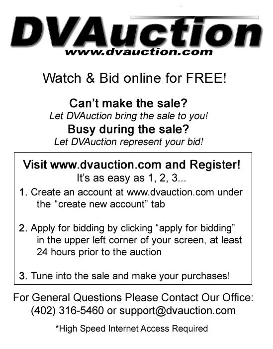 Following Auction Vendor Appreciation Free Raffle Give-Away The auction will be televised by DV Auction.com for viewing & bidding