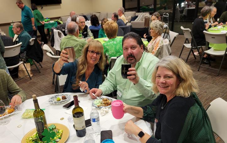 Erica WangsguartdThe Wine Club at Brio kicked off March with an early celebration of St Patrick’s day. Seventy of your neighbors and friends joined in the celebration, most all got into the mood coming decked out in green, including hair, hats, jewelry, which added to the mood of the evening. As usual the food and desserts were excellent, while the attendees caught up with old friends and made new acquaintances. The club now has over 200 members and has grown steadily for the two years since it started. We meet the first Sunday of each month at 6:30PM in the Brio clubhouse. We encourage our neighbors to come and join or rejoin in the fun, conversation, good food and comradery. The rules are simple, bring a beverage of your choice, an appetizer or dessert, your own glass and $1.00 per person to help cover the cost of supplies. The hard work of the Board makes things happen each month, from set up to clean up, (we need and appreciate all who will stay and help clean up). Each event is about two hours long and is a great way to mingle with your neighbors, meet new friends and enjoy a glass of your favorite beverage. What a great way to enjoy a Sunday evening. We hope many of you will come join us again in April on the 2nd. If you have never attended or want to know more about the Wine Club at Brio, feel free to contact myself or the Brio website and calendar.