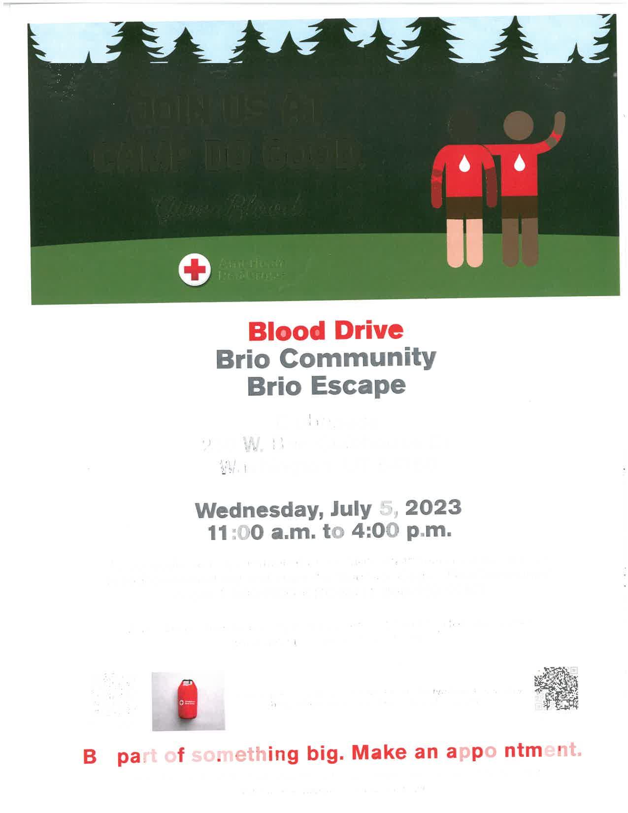 The Red Cross will be here the only time this summer for a blood drive. Register through RedCross.org
