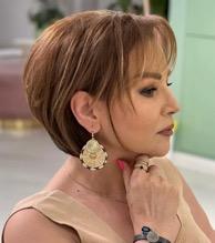 Bob hairstyles for women over 50 are an irreplaceable styling option. This variation with a few golden highlights will be a perfect fit for the ladies who want to showcase their lively but subtle character.