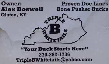If you are a KALA Member and would like to share one of your game recipes to KALA’s Kitchen and be featured in one of our upcoming KALA Magazine issues please contact Maryann Hall at solidrockwhitetails@ yahoo.com or call 859-556-7262. All you have to do is be a KALA member to participate!