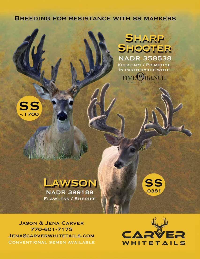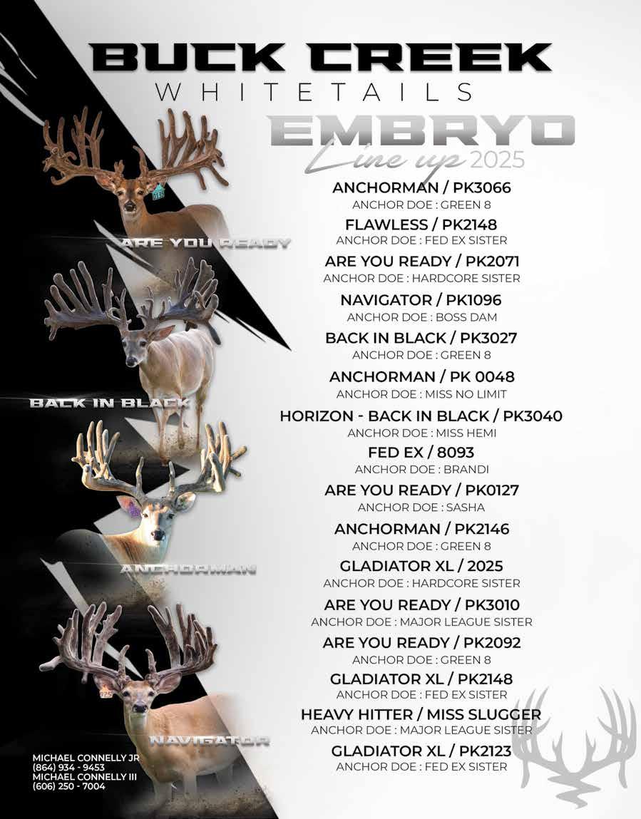 things differently. Connelly agreed, saying, “traveling to different states has allowed us to see what everyone is breeding or targeting that year through the auctions, which has also led us to become partners of several out-of-state deer.” In addition to Josh Moore having various sales market opportunities which were once unreachable, he also was introduced to the possibilities of embryos and flushes, which were