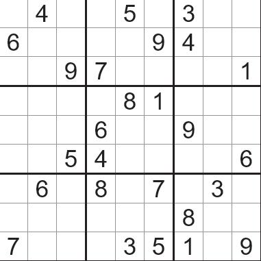 Fill in the boxes so that each row, column, and 3x3 box contains all of the numbers 1 through 9.