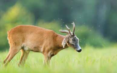 In the warmer, moist and more humid climate found in Alabama “insects must be managed yearround,” Dr. Moore said. These insects predominately include midge flies which can carry Epizootic Hemorrhagic Disease (EHD), horse flies which live on host blood and deliver painful and stressful bites, ticks which can carry Lyme Disease and mosquitoes which can carry a vast amount of diseases such as Eastern Equine Encephalitis, West Nile virus and other diseases that can also affect both deer and humans. Alabama is home to approximately 60 species of mosquitoes that are attracted to water puddles, watering holes, ditches and other waterways.