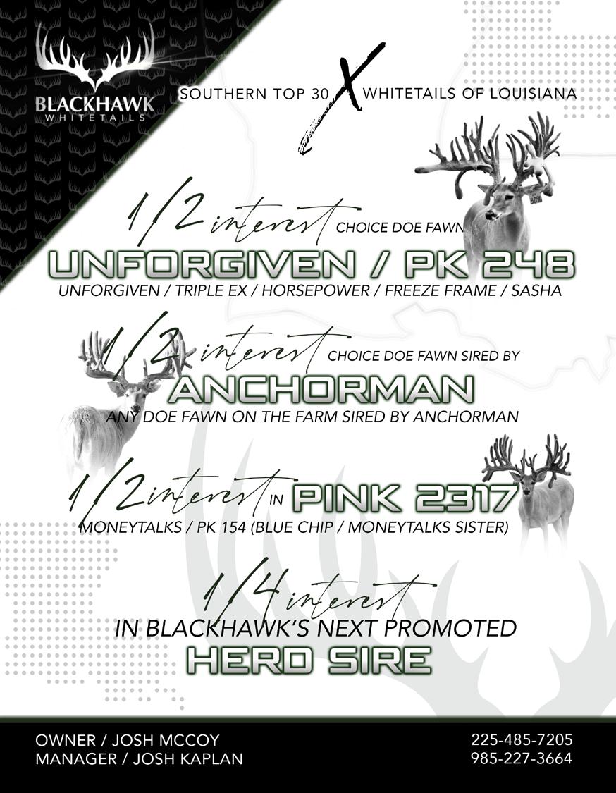 100% dependent on his farm, he is grateful for the help of his wife Mary Ann and their five young children. “Bottle feeding fawns is a highlight of working together as a family,” he said. With more than 250 deer (fawns included) on two properties, it keeps them very busy. Joey Harrington, with whom John Ervin has a deep friendship and strong partnership, also has 36 deer on the farm. John Ervin is also partners on more than 100 deer at eight different farms in several different states.