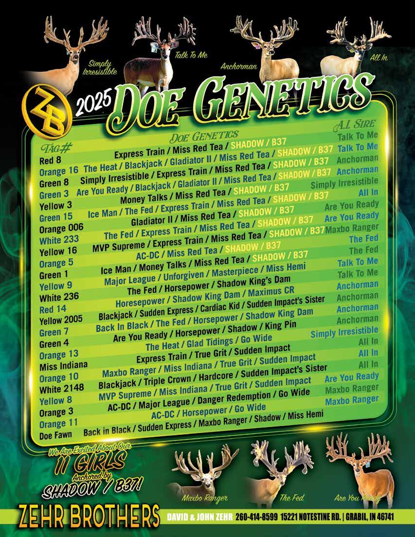 Reservation for space and buck info will be due no later than August 12th, 2025. If you have an existing picture ready to go, that will also be due at that time. If you would like to send in a last minute photo of your buck, the cutoff date is September 1st by 8am CST. Placement will be in order of first come first serve. Printing and mailing will start September 4th and be in hand between September 16th-20th. Just in time for semen sales getting ready for Breeding Season. These will be mailed to Breeders and Ranch members of the 18 state associations we service.