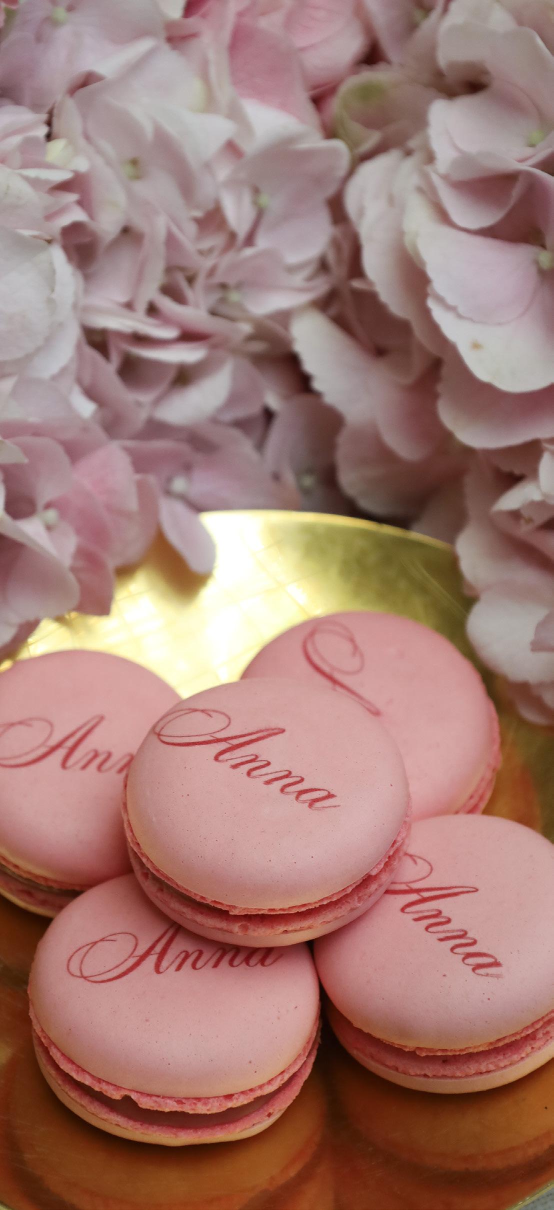 Ønsker De at personliggøre Deres næste store begivenhed eller særlige lejlighed, tilbyder vi macarons og kager med Deres eget logo, initialer eller personlige tekst.