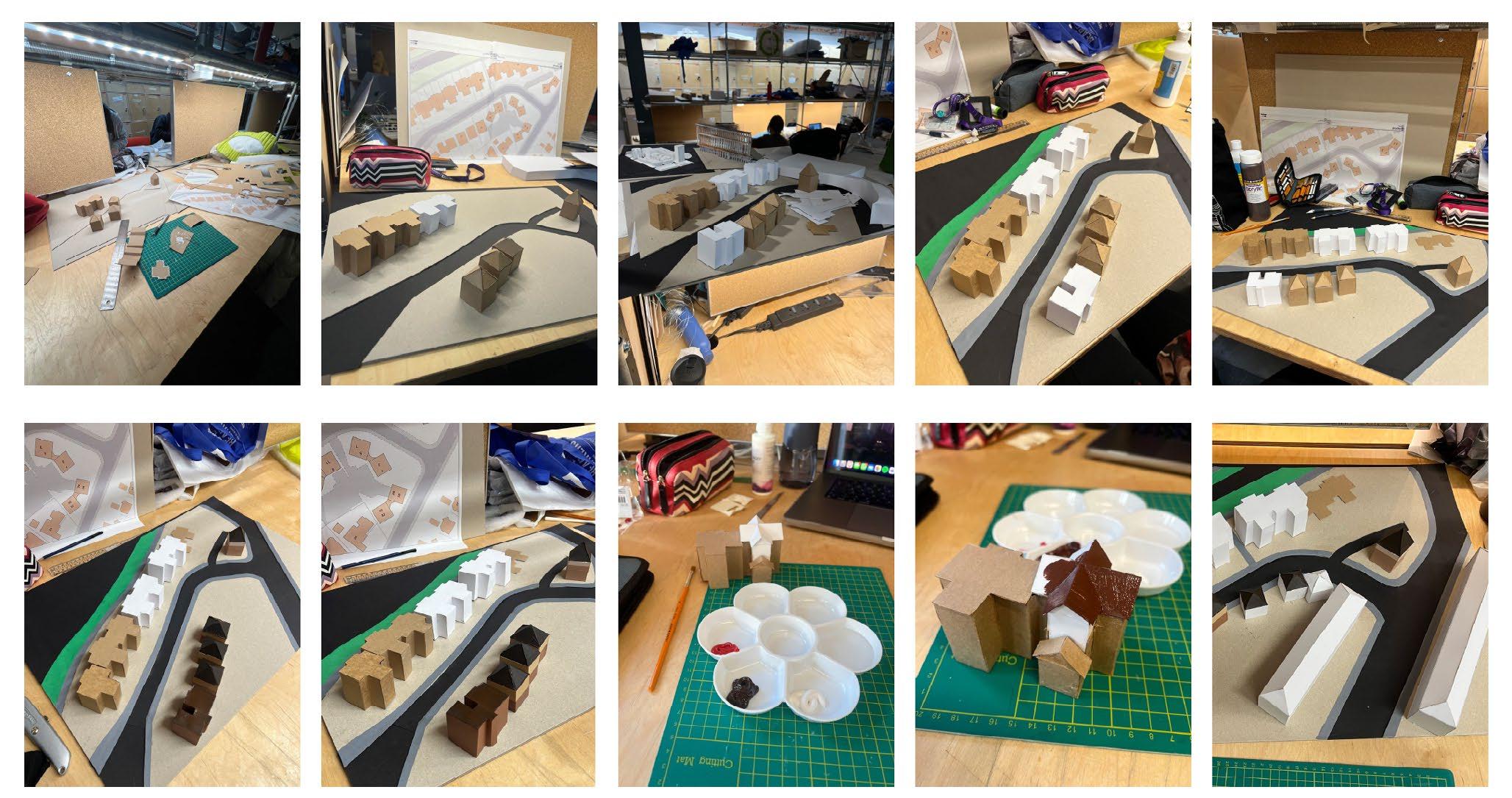 Following on, the next step of exploration in this project was studying and creating a model of my street, learning how to use digi map and making a scale model. I developed the model using coloured card to represent each part of the model; green for grass, black for roads, grey for pavement, brown for houses. Then, using further detail and paint for my house to stand out on the street. A3 Scale 1:250.