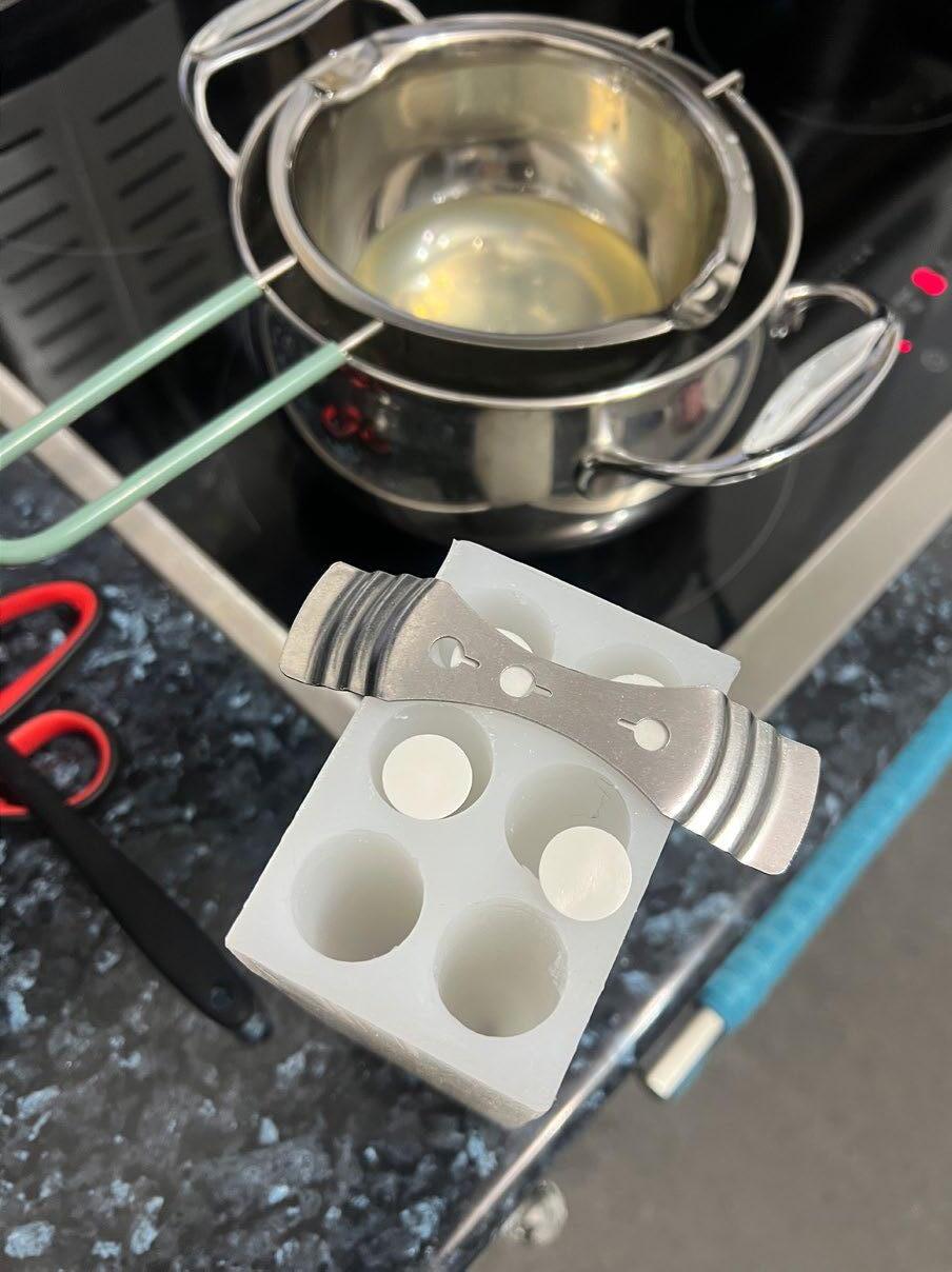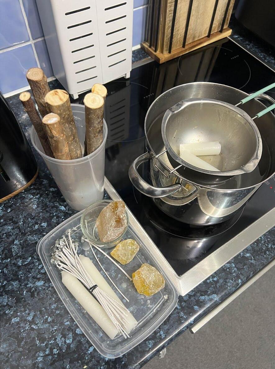 When experimenting with making silicone moulds for the candles, a happy accident occured where I did not have enough silicone to make a full candle mould from the tree sticks, therefore I thought of using the stick as a continuation to the candle itself. This made me realise the resin can also act like a glue for holding the candle to the stick. This project was extremely experimental and hands on, with the aim to just make and improve, therefore my images are procees pictures and developments.