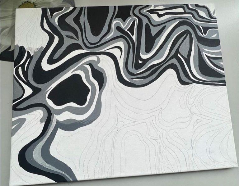 An exhibition at the Basildon Library showcased my Fine Art A-Level canvas piece. During my fine art coursework and exam unit I gathered large selections of drawings combined with painted backgrounds, digital backgrounds and experimenting with media. My brief of light vs. dark allowed me to take the direction of taking that concept into using white and black contrasts.