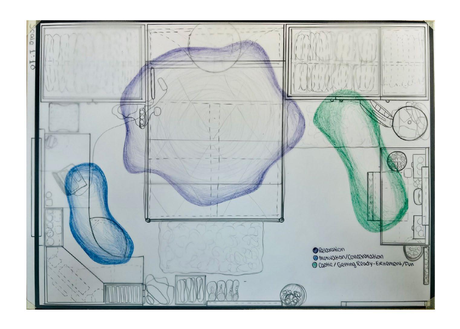 Starting at the Bartlett School of Architecture, we individually explored creating drawings of our own rooms, looking at orthographic drawings, and visual drawings. Additionally, I looked at representing sounds in my room, where I spend most of my time, foot traffic of my mornings, and combining sound light and movement. With the start of this project looking at drawings, I learnt how to create accurate scale drawings of a room. A3, Scale 1:10.