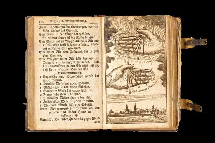 Description Fifth edition overall, first thus. Octavo (190 by 155mm). Woodcut title-page, two woodcut hand palms, one single volvelle, one with two moveable parts, and three with three, with contemporary hand-colour in part; contemporary cats-paw sheep, manuscript label on the spine.