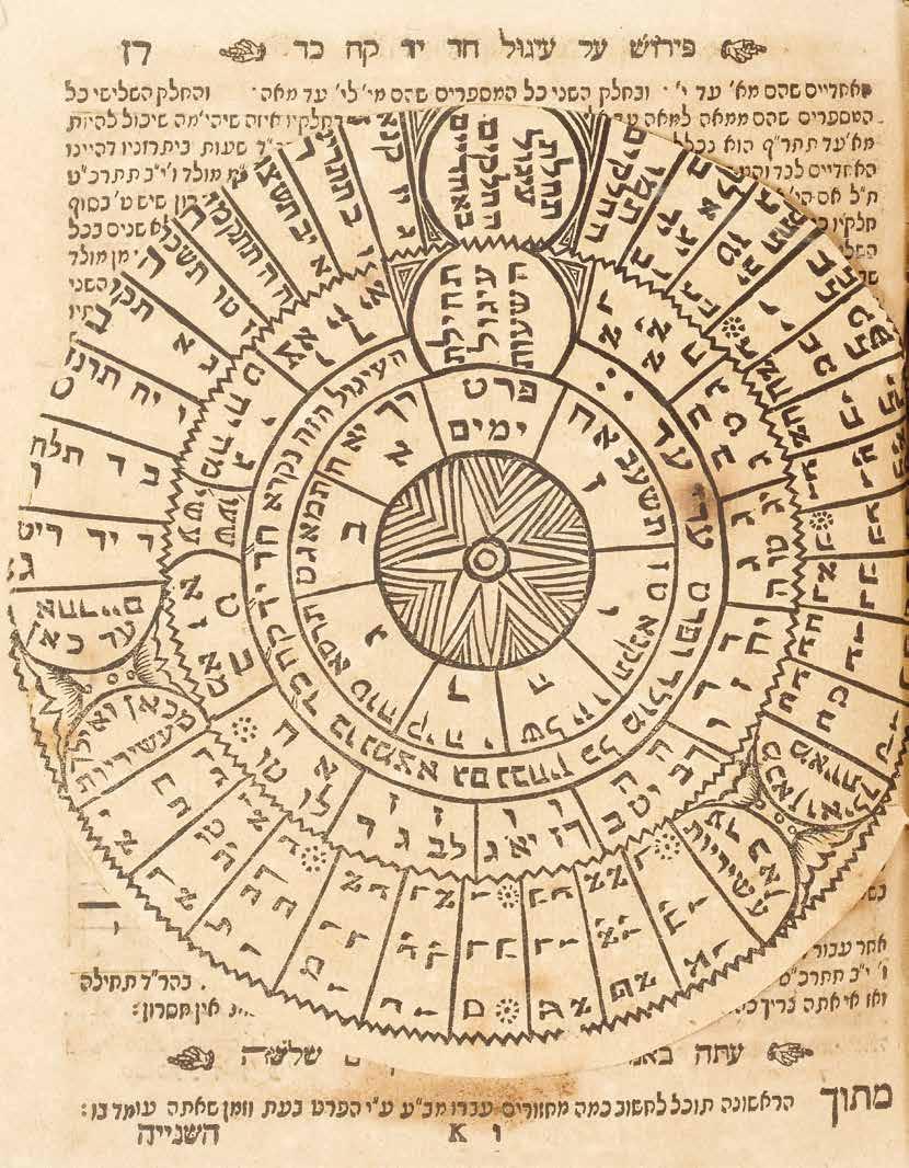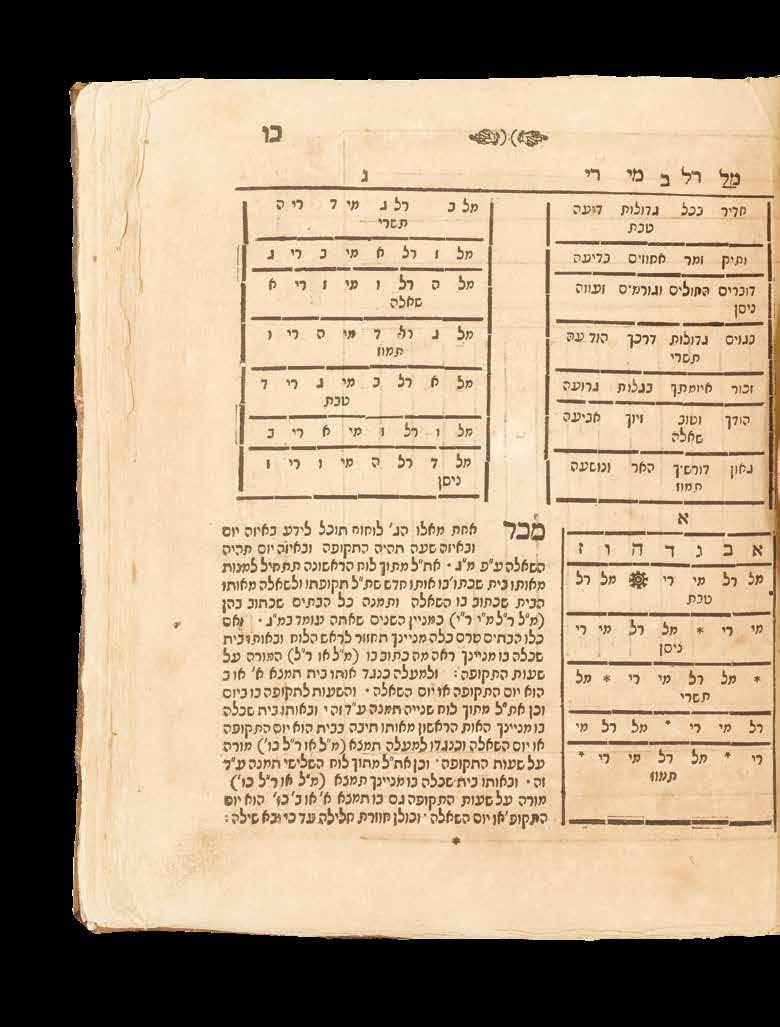 Beilin’s work is based on that of Jacob Marcaria (1561), and was first published in 1614-1615 (reprinted in 1640, 1691, and 1720). It includes an additional “circular table, which facilitated the determination of holidays and other important dates” (Jewish ‘Encyclopedia’). “The fifth [edition], published in Offenbach, is a particularly beautiful edition with fine illustrations and volvelles for calculations” (Karp).