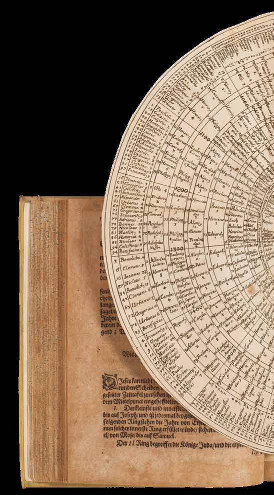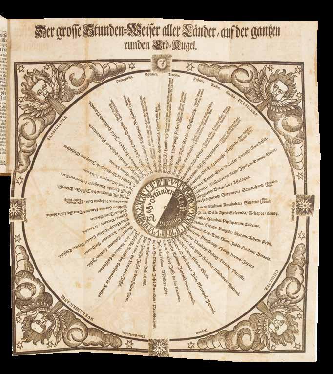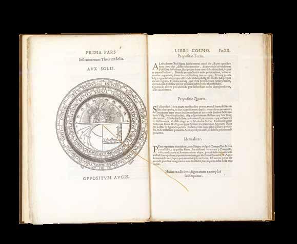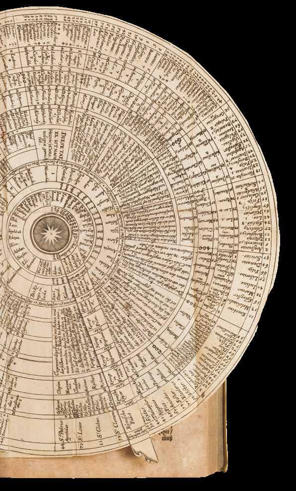 Quarto (250 by 165mm). Title-page with large woodcut vignette, further illustrations and diagrams throughout, five with volvelles, of which four have moveable parts, and one with a thread pointer, printer’s device at end, ink library stamps removed from first and last leaves, washed; modern tan calf, blind, antique.