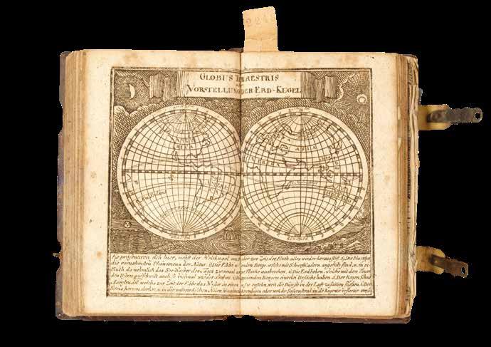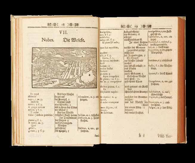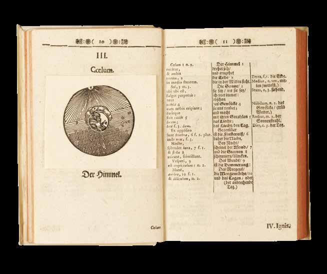 “This first work of the ‘Deliciae...’, written solely by Schwenter and published by his sons and daughters, dedicated to Duke Augustus the Younger of Brunswick, deals, among other things, with sundials and striking clocks, astrology, the art of writing, chemical recipes, the art of music and singing, the art of fire, water, and melting, architecture, optics, etc” (Seebaß-Edelmann). It also contains the first image of a fountain pen (page 520).
