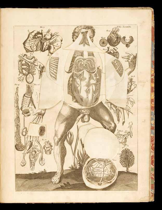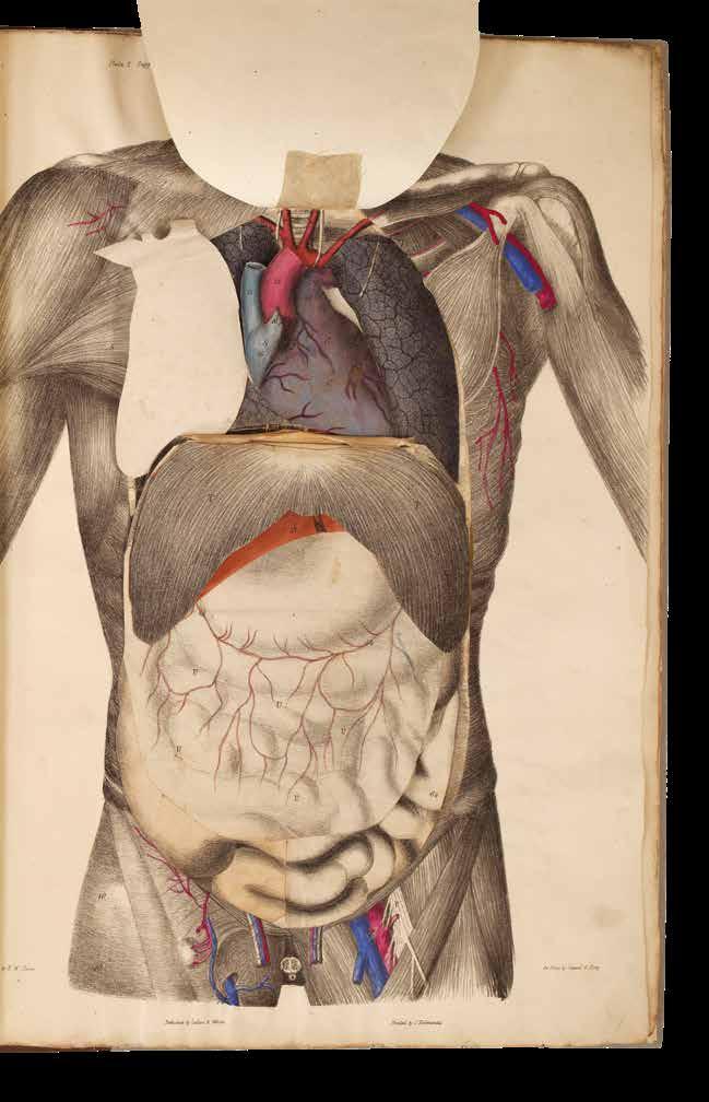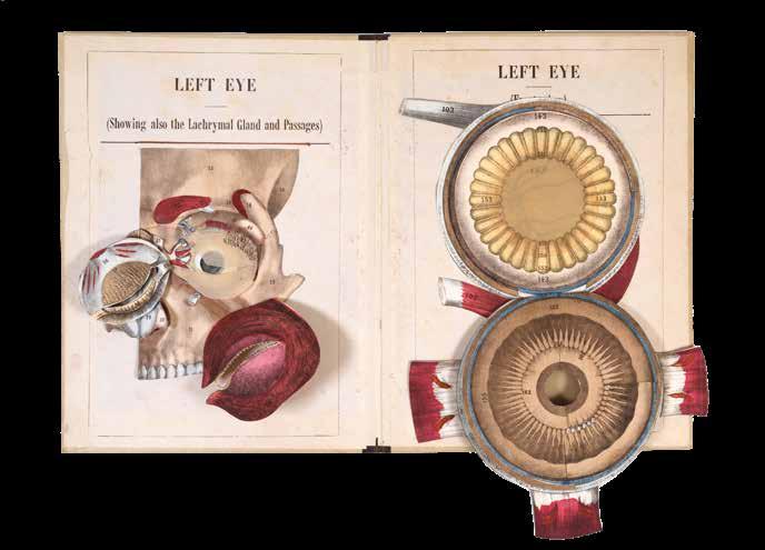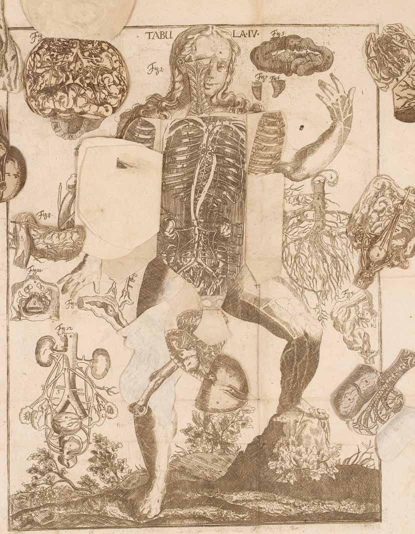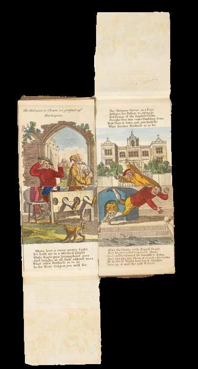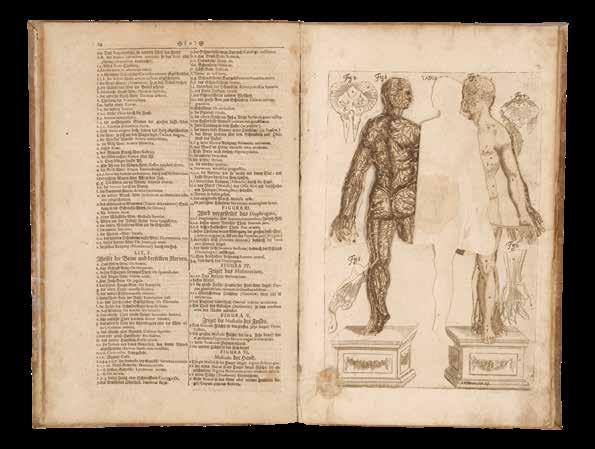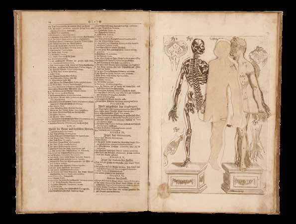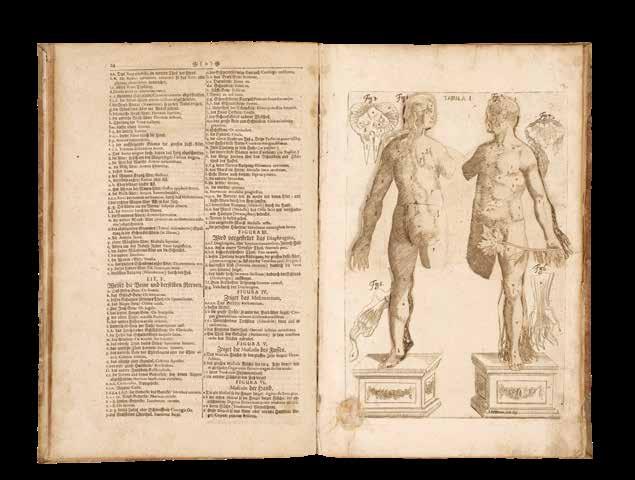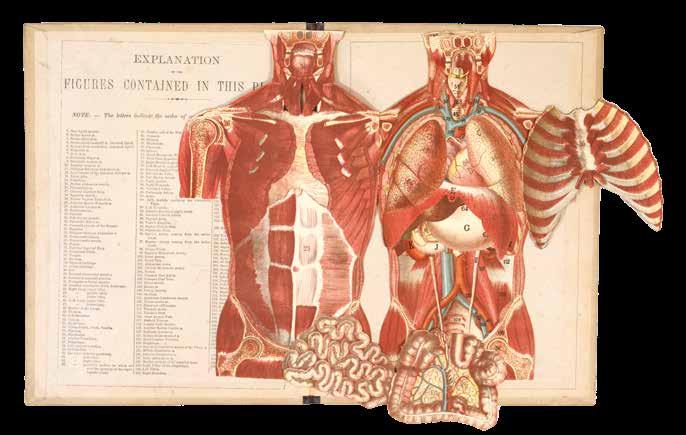 In early examples, moveable elements are used to explain or illustrate the subject of the book: from the two-dimensional volvelles of Apianus, Beilin, Blebelius, and Gallucci in the sixteenth century; the sometimes three-dimensional re-examination of scientific and mathematical methods by Cowley (item 15), Dudley, Hofmann (item 10), Keil (item 15), “Poliander” (item 5), and Schwenter (item 4), during the long eighteenth century; to the most extensive private collection of “turn-up, turn-down” books, which begin with “Adam & Eve” (items 21 forwards) transformations, include the escapades of that loveable rogue Harlequin, and reach their apotheosis with the medical dissection books of Remmelin (item 12), Tuson (item 18), and Witkowski (item 19), of the eighteenth and nineteenth centuries.