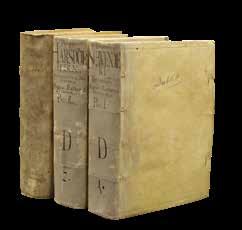 1. Early annotations to the title-pages of volumes one and II, dated 1660; 2. Volumes one and II, with the pencilled ownership of “Doublet” on the inside and outside front covers; 3. Volume III with the later armorial bookplate of “Nordkircher” on the inside front cover.