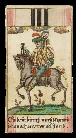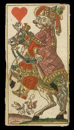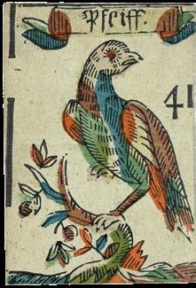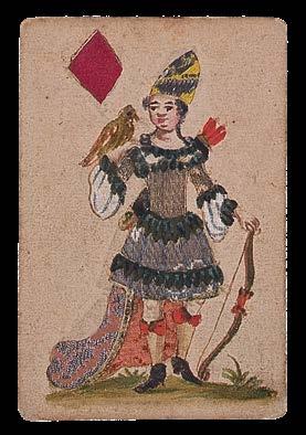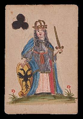 The janiform eagle, which had been a symbol of the German emperors since the fifteenth century, also suggests a German origin for these cards. Indeed, Hargrave records another deck of silk trappola cards from the seventeenth century which appear to have been made in Germany.