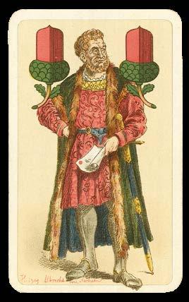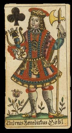 Swiss artist Gertrud Kümpel-Amsler was commissioned to design a cardthemed stained glass window for the offices of the great card manufacturers, AG Müller. Her work on the project proved such a success that in 1989 she was asked to design a deck of cards along a similar theme.