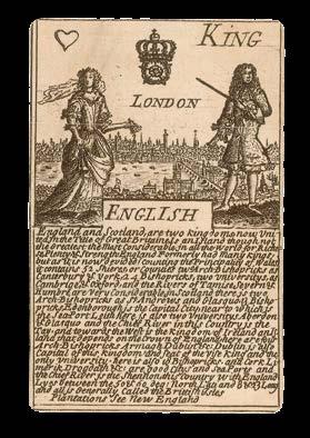Since the present cards do not show Oates’ fall from grace, they appear to have been produced when anti-Catholic feelings remained prominent. In fact, prints were commonly used at this time to fuel and manipulate public anxieties, and the playing cards may therefore have served as another way to promote political propaganda among the populace. Surviving advertisements for the deck show that the cards were sold in packs, or in sheets “to adorn studies and houses”, for the very affordable cost of eight old pence. Indeed, the cards proved sufficiently popular to warrant the publication of at least three editions.