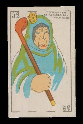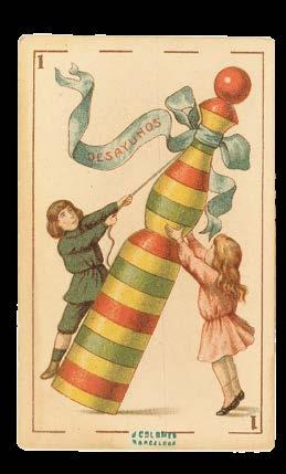 Active in the final decades of the nineteenth century and the opening decades of the twentieth, Simeón Dur of Valencia was among the most prominent cardmakers in Spain. Initially, Durá published decks using the same design as the earlier Manaut Brothers firm, from whom he had taken over business, but later expanded his range to include original designs printed using modern lithographic equipment. Both the introduction of the card tax in 1904, and the Spanish Civil War decades after, put great strain on the Durá firm, and by the 1950s it had stopped producing playing cards, instead operating as a general printing company, which it continued to do until 1970 under Durá’s sons. The present deck was produced for Chocolates Angelical of Barcelona; at this time many Spanish chocolatiers sold their goods accompanied by a collectable card or deck of cards for promotional purposes.
