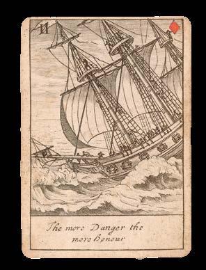 Henry Winstanley was an English painter, engineer and merchant whose Grand Tour of Europe from 1669 to 1674 inspired him to pursue the art of engraving, which he may have studied under Wenceslaus Hollar. He is, however, perhaps best known for the construction of the first lighthouse on the Eddystone Rocks near Plymouth. Unfortunately, his confidence in his construction stretched a little too far, and his boast that it would shelter him during “the greatest storm there ever was” proved false when he lost his life within it during a storm of 1703! It appears that the present deck of playing cards was the only one ever made by Winstanely.