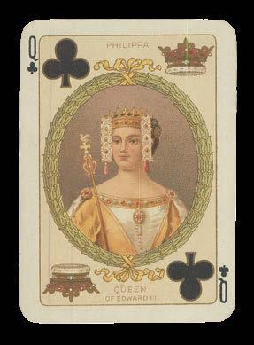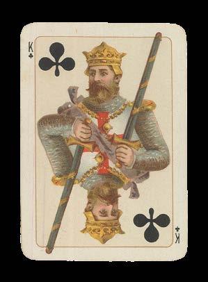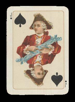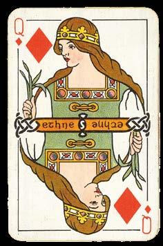 Perhaps produced during the Irish War of Independence (1919-1920), this deck celebrates Irish history and culture. The backs of the cards decorated with an artistic Celtic pattern in four different colours, while the Jacks are harpers, a symbols associated with the land since the thirteenth century. The Kings and Queens depict historic members of royalty: