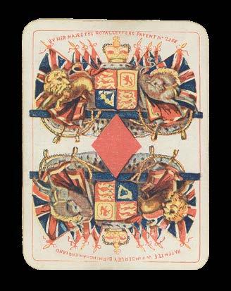 Description 40 chromolithograph playing cards, with black dotted pattern to verso. Dimensions 96 by 63mm (3.75 by 2.5 inches). £250