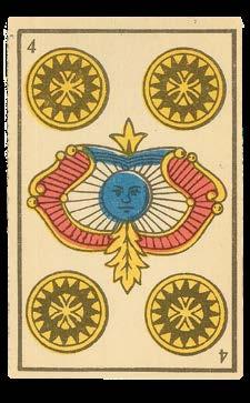 Using the traditional Spanish system, in which suits are categorised as Coins, Cups, Clubs and Swords, the symbols for these suits are incorporated into the design of each image, meaning that the cards can be considered a “transformation deck”.
