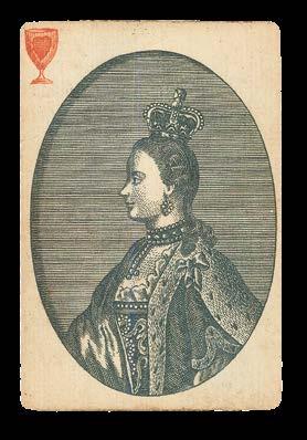 18 of 52 engraved playing cards.